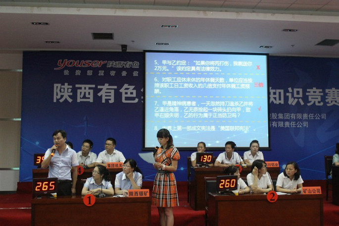 7月30日,在集團公司工會與政策法規部聯合舉辦的法律法規知識現場搶答競賽活動中,我礦代表隊不畏強手,沉著冷靜,積極應戰,取得了大賽三等獎的好成績,展示了陜銀人的良好形象。這次法規知識競賽涉及內容多、范圍廣,共有24支代表隊參加,參賽選手們準備充分,比賽氣氛緊張熱烈,有效提高了職工法規意識。